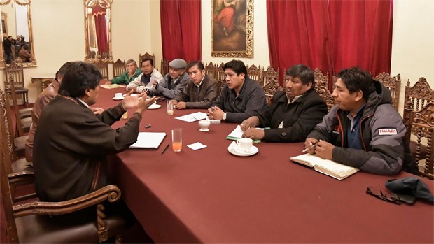 Hoy por la mañana representantes del sector fabril se reunieron con el presidente Evo Morales para presentarle dos proyectos de ley, uno de ellos referido a la reincorporación de aquellos trabajadores que fueron despedidos injustificadamente, como sucedió con 55 obreros de la curtiembre Tannery América en Cochabamba y 23 trabajadores de la Red Uno en Santa Cruz.