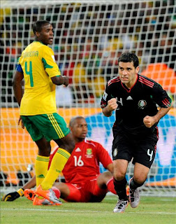 Guiada por Giovanni Dos Santos, la selección mexicana entró más conectada al partido y apenas tardó dos minutos en disfrutar de su primera ocasión. El joven ex jugador del Barcelona aprovechó el miedo sudafricano, con los once 'bafana' jugando en su campo, para agujerear el entramado defensivo. Con un potente tiro a los 20 minutos lamió el poste y estuvo a punto abrir el marcador.