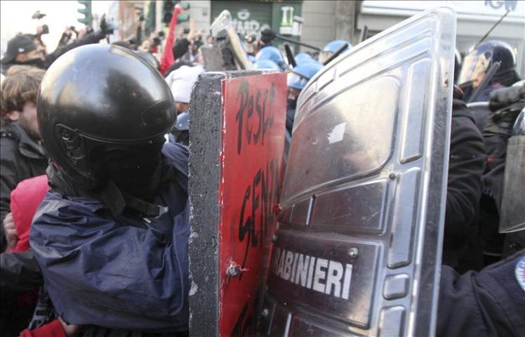 En las ciudades de Milán, Turín, Palermo y Roma los manifestantes se enfrentaron a las fuerzas del orden que les impedían continuar la marcha que, en el caso de Roma, intentó llegar al Senado, donde Monti exponía a los senadores su programa de Gobierno.