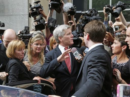 Bob McDonnell se veía pálido cuando fue rodeado por las cámaras de televisión antes de subir a un vehículo que lo esperaba.