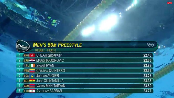 Quintanilla ocupó el sexto puesto en su grupo marcando un tiempo de 22.46 segundos,inferior a su marca de 23.22 con la que accedió a los Juegos. do.