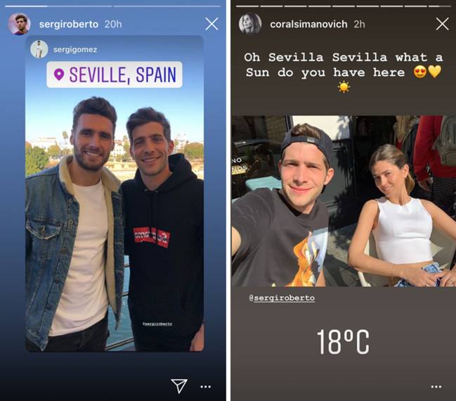 Por el momento, Leo Messi y Sergi Roberto son los únicos jugadores del Barça que han dado señales de su paradero en estos días de descanso. Pero Simanovich ha compartido otras fotos en sus stories en las que también aparecían Romarey Ventura y Melissa Jiménez, las mujeres de Jordi Alba y de Marc Bartra respectivamente, por lo que es muy probable que el lateral del Barça también haya viajado a Sevilla con ellos y que se hayan reencontrado con Bartra, también exbarcelonista que ahora milita en las filas del Betis.
