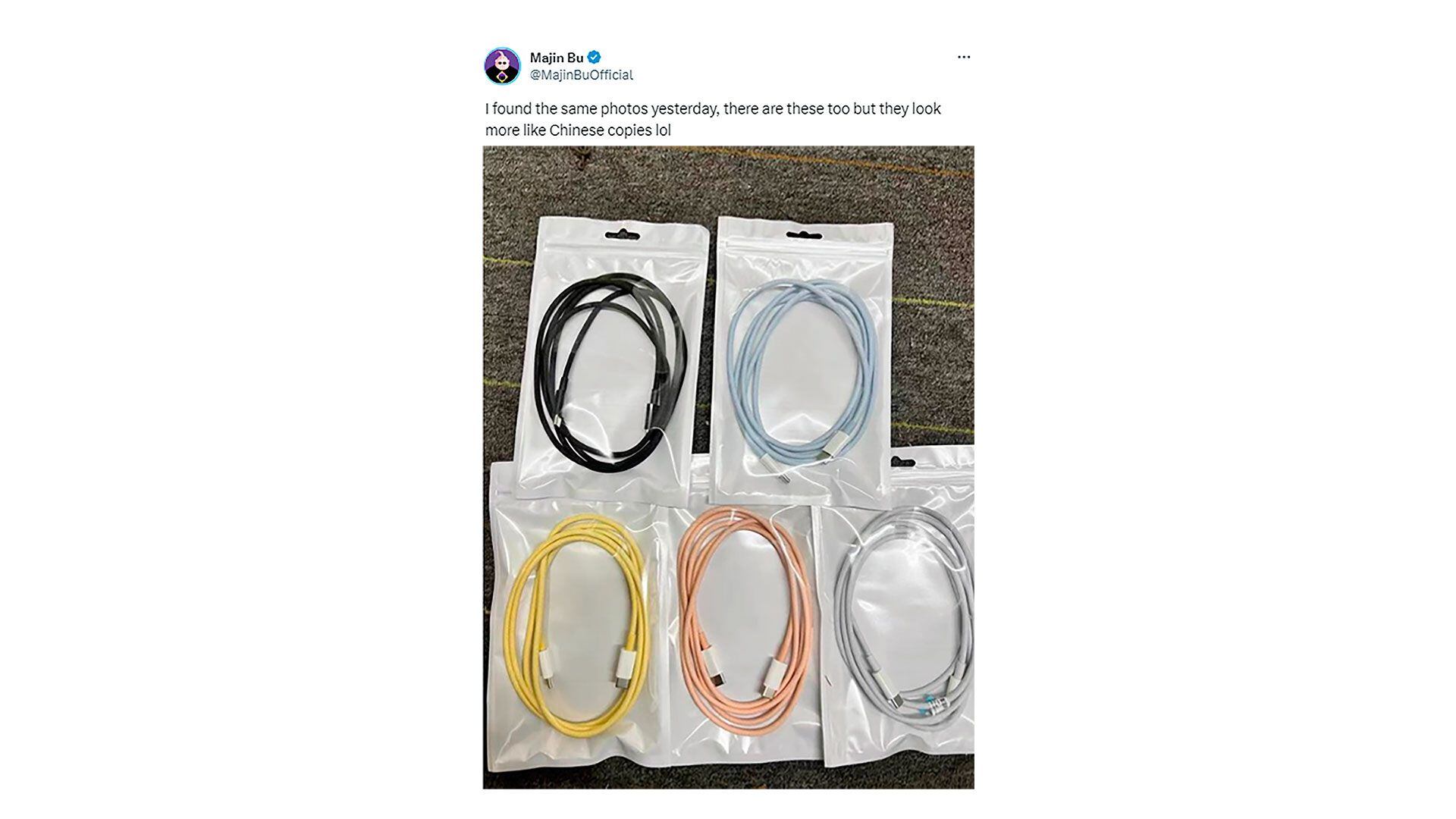 A partir del rumor, aparece la duda de que si los cables serían opcionales o incluidos. Aunque Apple dejó de incluir los cargadores en las cajas de los iPhone, seguía incluyendo los cables. De confirmarse la aparición de esos nuevos cables de colores, cabe preguntarse si serán los cables estándar de los iPhone 15 y si Apple los incluiría en la caja.